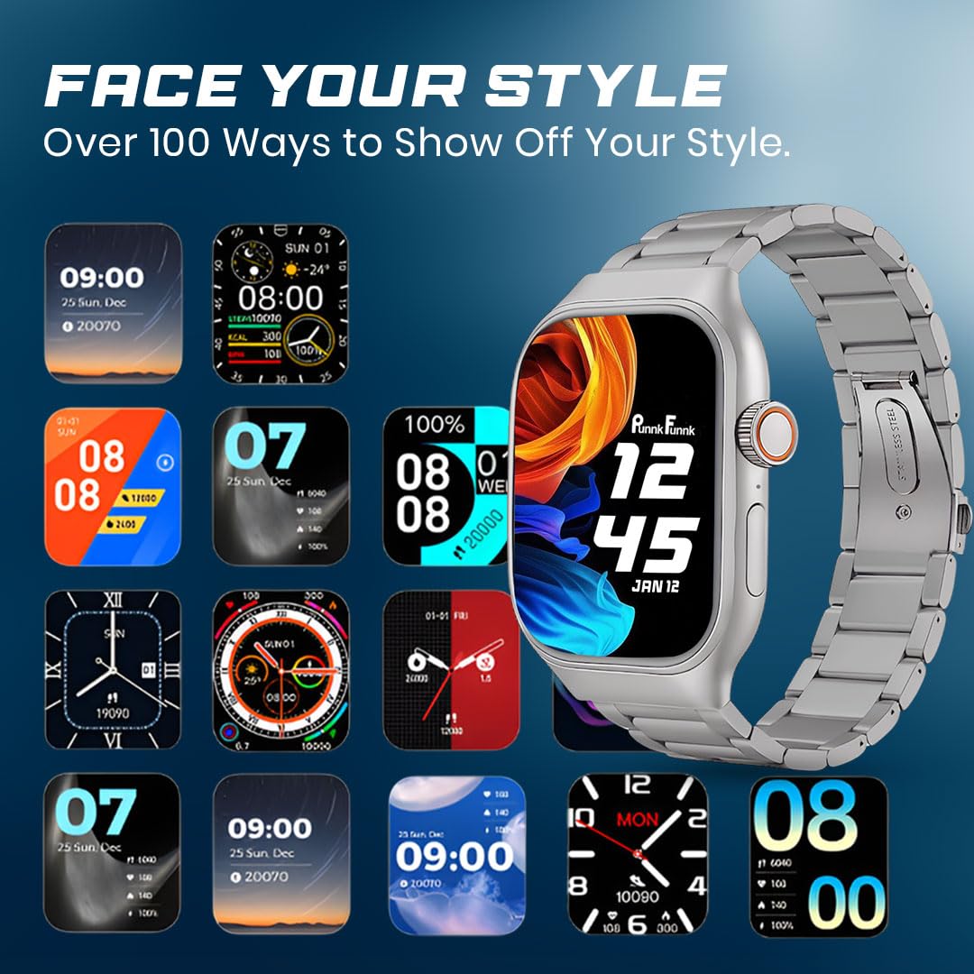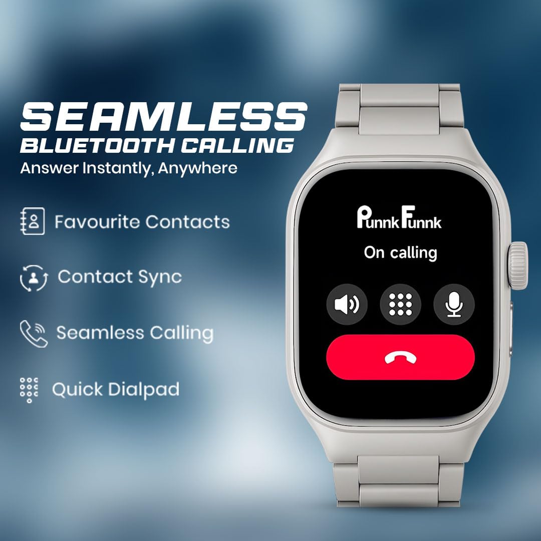 PunnkFunnk Newly Launched Fitrivo SmartWatch 2.01″ Curved AMOLED Display, 100+ Watch Faces, Crown Control, 100+ Sports Modes, Health Tracking, Bluetooth Calling, IP67, for Men & Women (Metal Silver)