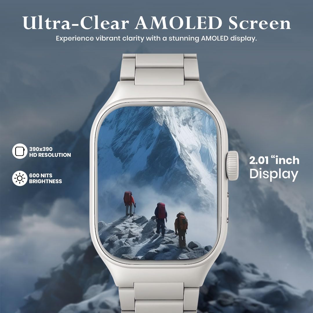 ✅ [2.01″ Curved AMOLED Display for Vivid Clarity] Enjoy an immersive visual experience with vibrant colors and sharp detail on the sleek curved AMOLED screen—perfect for outdoor and indoor visibility. Get stunning picture quality that brings your notifications and fitness stats to life.
