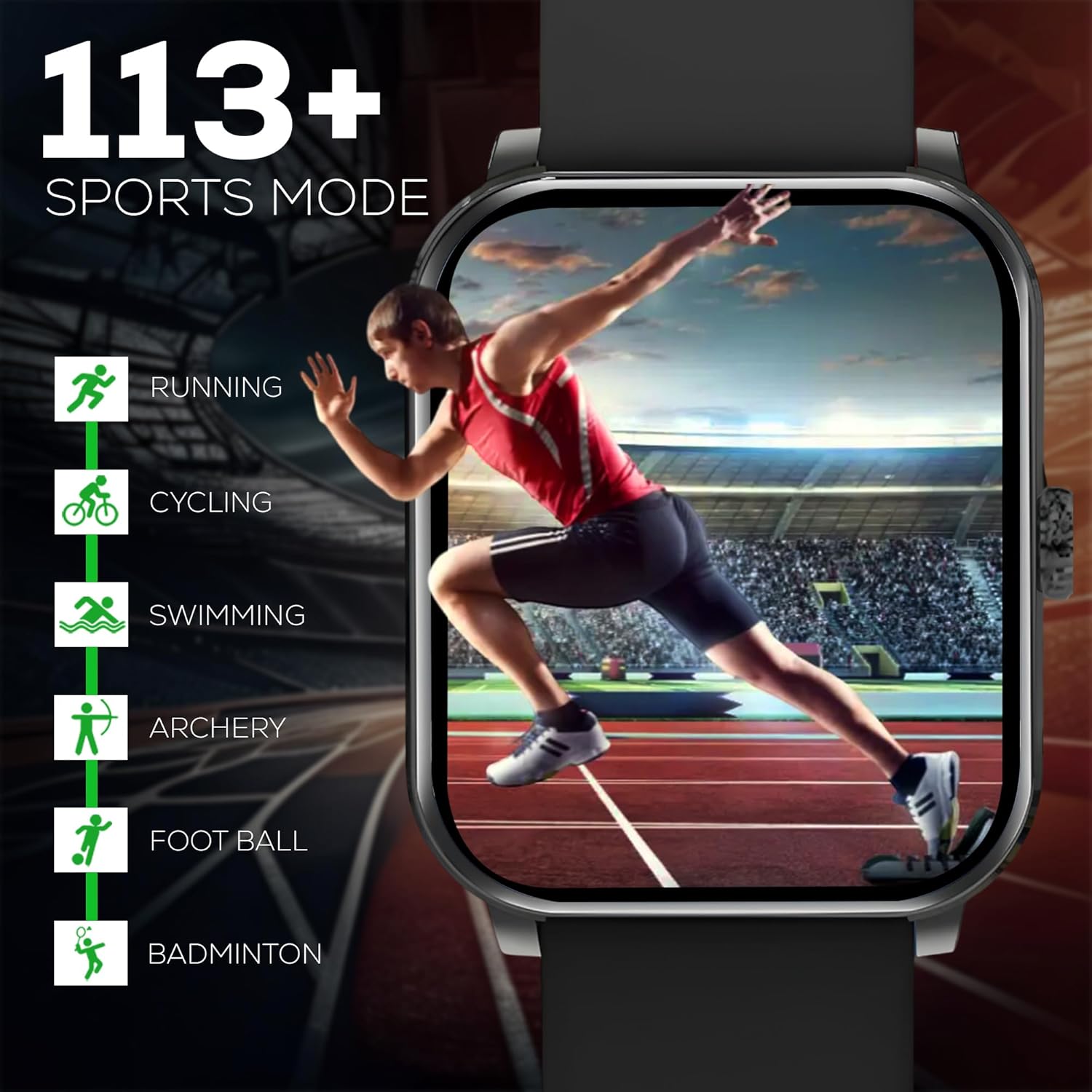 PunnkFunnk NovoLux HD Display Smartwatch for Men & Women Answer/Make Calls, Heart Rate Monitor, 113+ Sports Modes, Step Counter, IP68 Waterproof, Compatible with Android & iOS(Black)