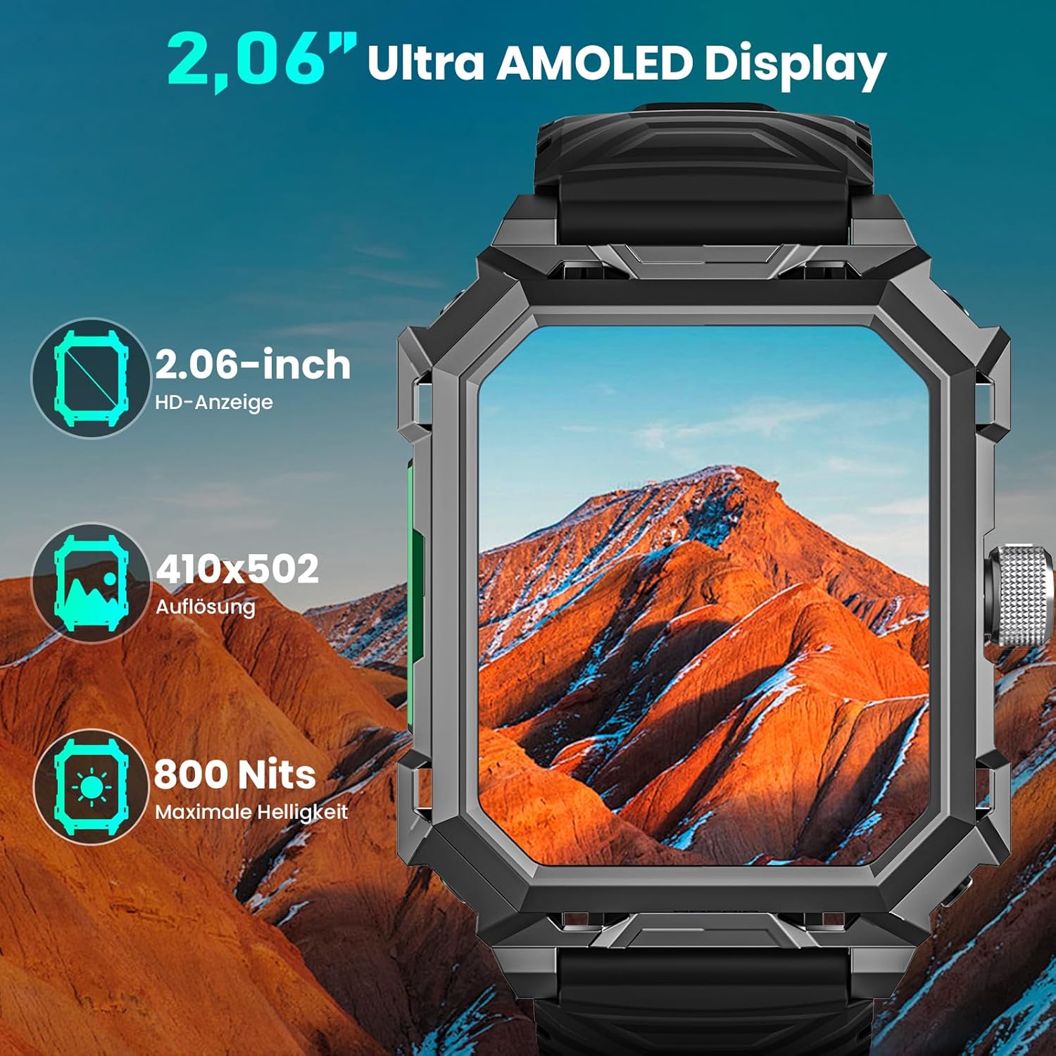5 reviews for Rogbid Military Smart Watch for Men Women,2.02″HD 710mAh IP69 Waterproof Smartwatch,Monitors Blood Pressure, Heart Rate,Sleep,120+Sports Modes Outdoor Fitness Activity Tracker for Android iOS iPhone.