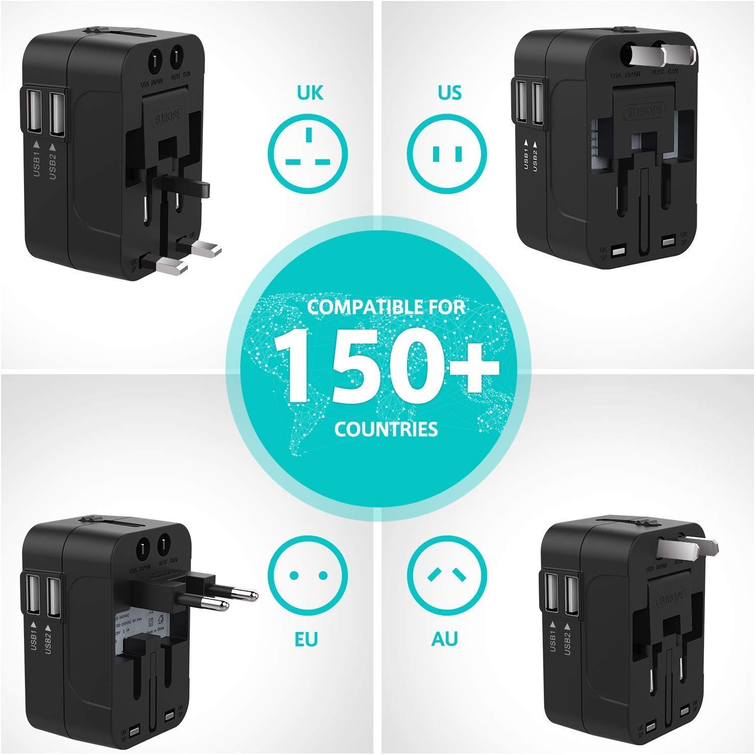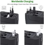 rts Universal Travel Adapter, International All in One Worldwide Travel Adapter and Wall Charger with USB Ports with Multi Type Power Outlet USB 2.1A,100-250 Voltage Travel Charger (Black)