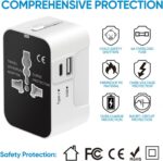 🌐 【Safety Certified】– This international travel adapter is built in Max 6A Fuse to protect your gadgets from power surges. Different from other same products, it also has safety shutters and a plug lock system, certified by RoHS, CE, and FCC, ensuring its safety and reliability to the greatest extent.