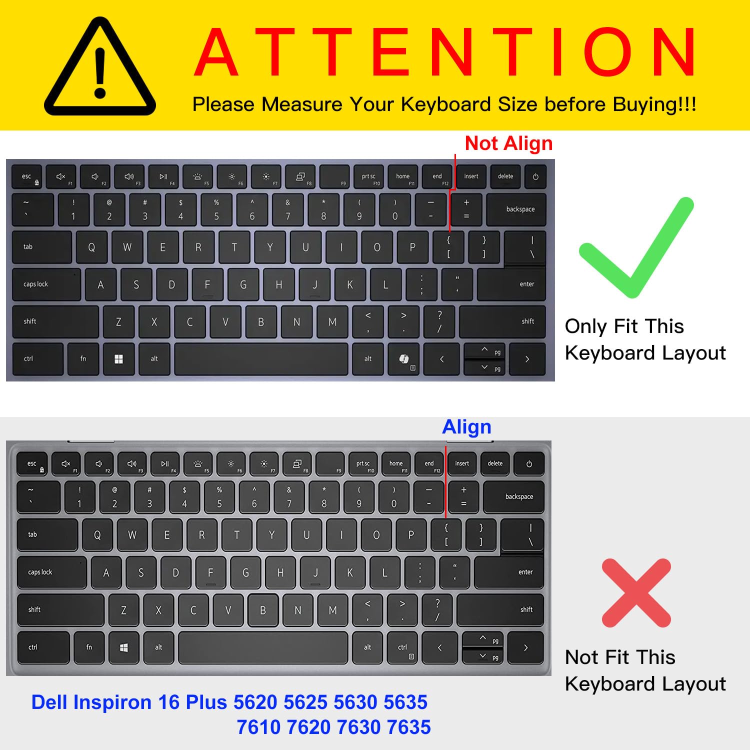 Designed for 2024 New Dell Inspiron 14″ 5440 5441 5445 7440 7441 7445, Dell Inspiron 16″ 7640, Dell Inspiron 14 Plus 7441 | 7440 & Dell Inspiron Plus 16 7640 Laptop. US Keyboard Layout(NOT fit for Dell Latitude 7440 7640). Please do check your Laptop model avoid buying wrongly!!!