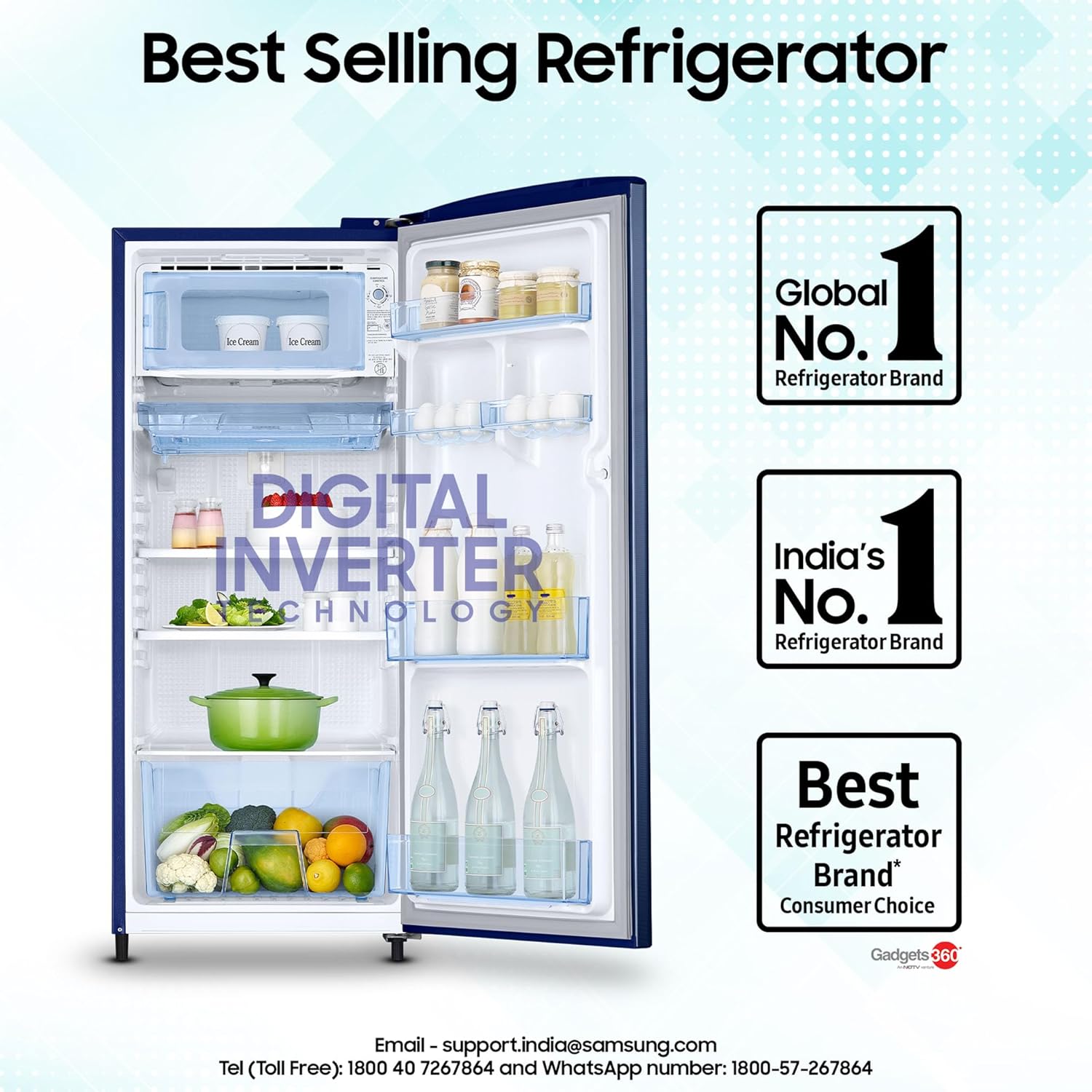Samsung 183 L, 4 Star, Digital Inverter, Direct-Cool Single Door Refrigerator (RR20C1724CU/HL, Camellia Blue)