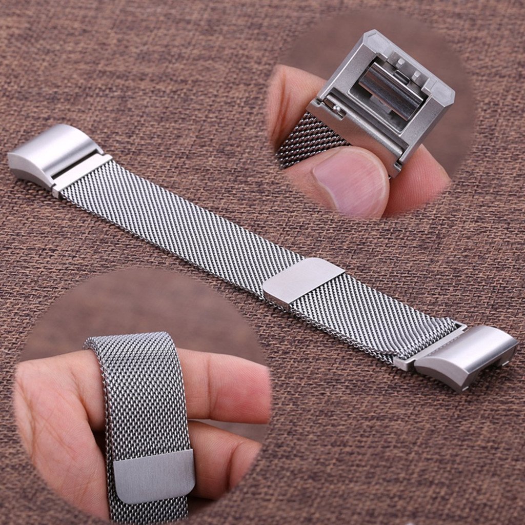 Segolike for Fitbit Charge 2 Wrist Strap, Stainless Steel Metal Mesh Writband Watchband with Unique Magnet Clasp – Silver
