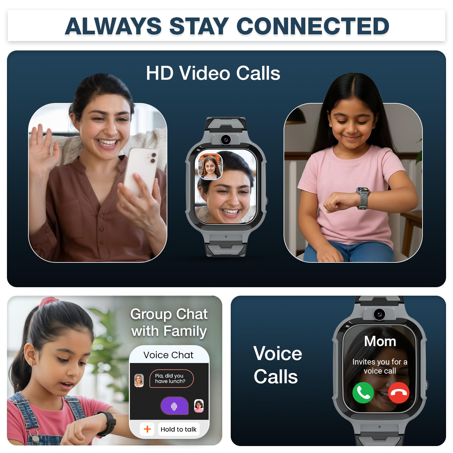 ✅ [Compatibility] – This smart watches for kids model works with Airtel, Jio, and VI Nano SIM (4G). Supports both Android and iOS devices. Long battery life, water-resistant, and shock-proof design.