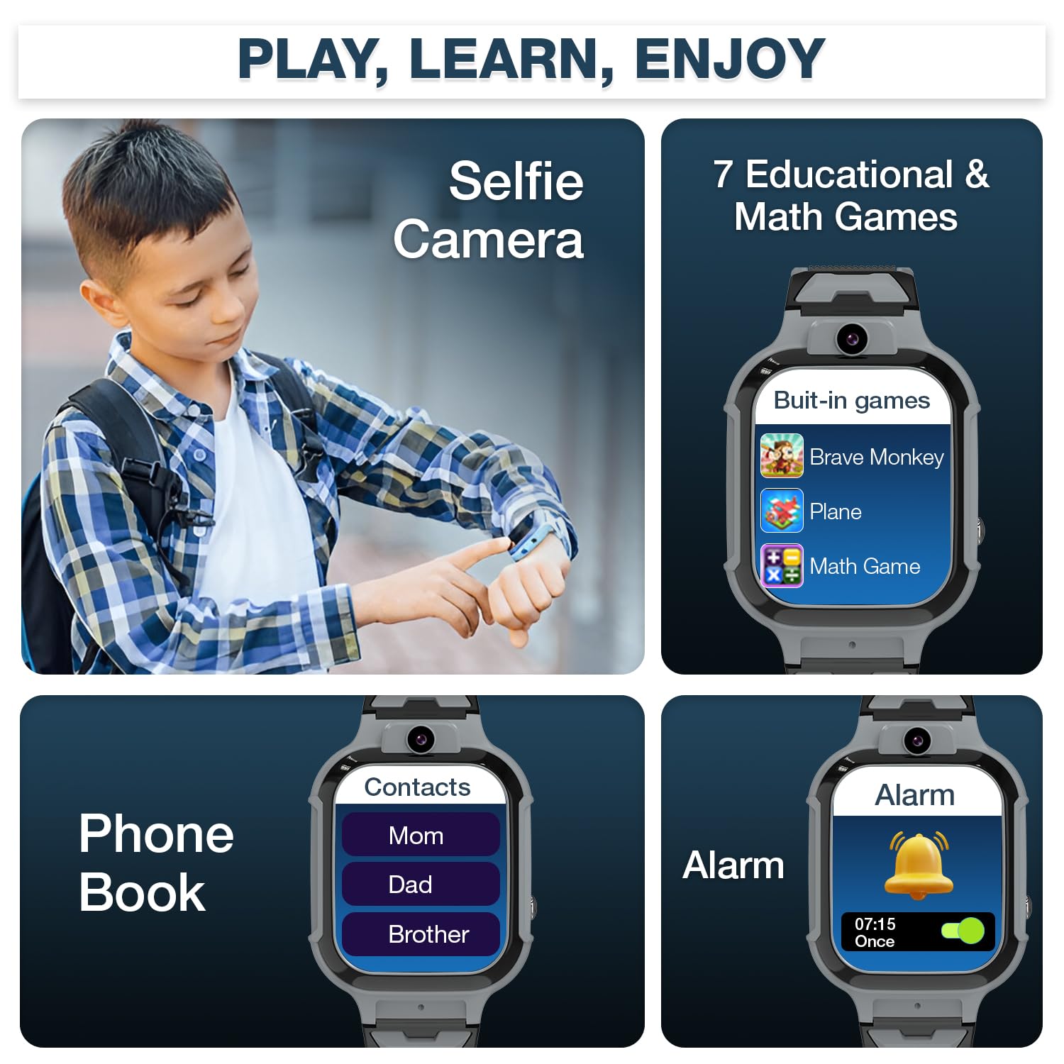 ✅ [Learning with Entertainment] – Loaded with 7 educational & math games, selfie camera, alarm, and phone book, this kids smart watch for boys combines fun with safety.