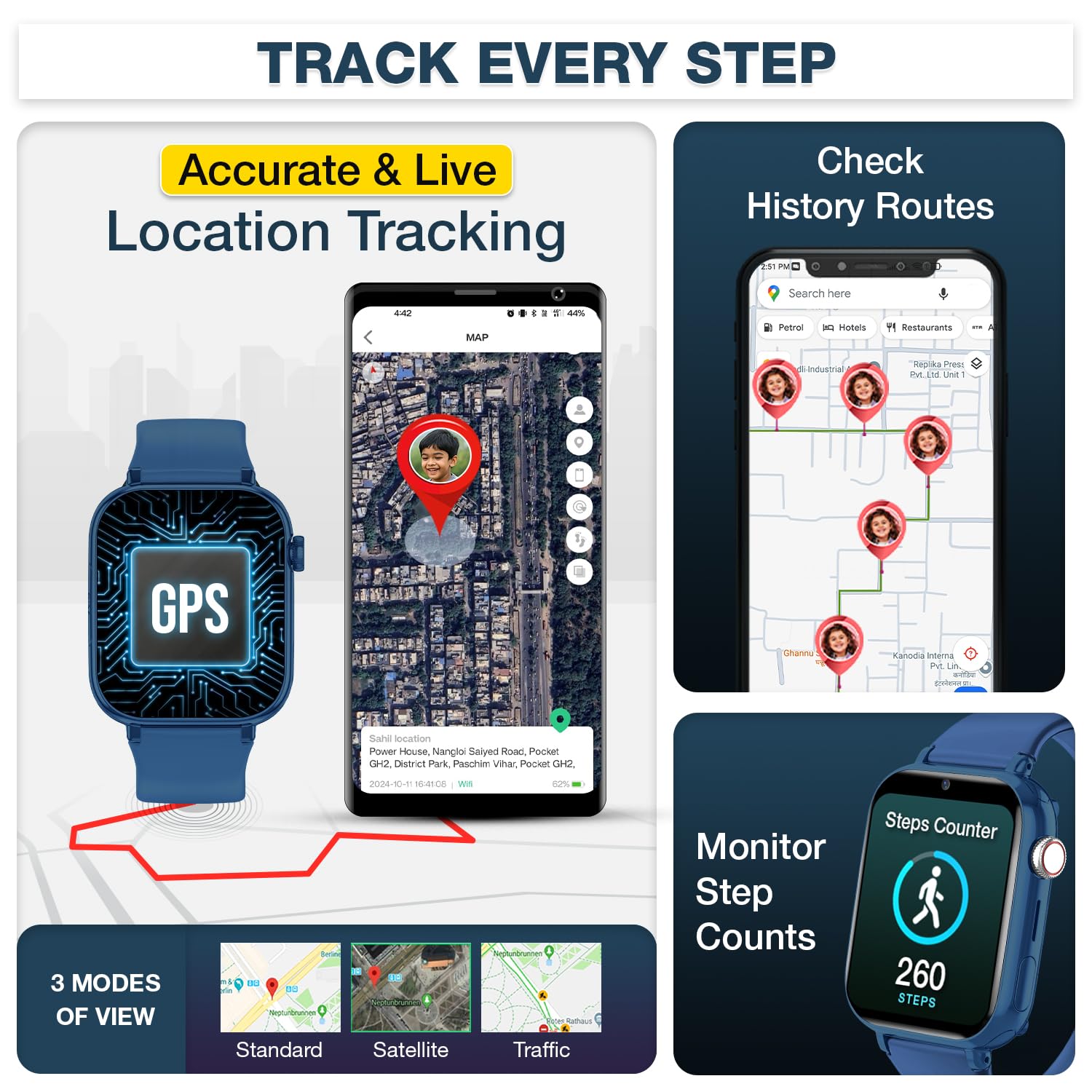 sekyo ‘Magic Pro’ 4G Kids Smart Watch | Live GPS Tracker, Video Call, Pedometer, Habit Coach, Route History, Family Group Chat, Safe Zone Alert, SOS, App Control | Kids SmartWatch for Boys/Girls -Blue