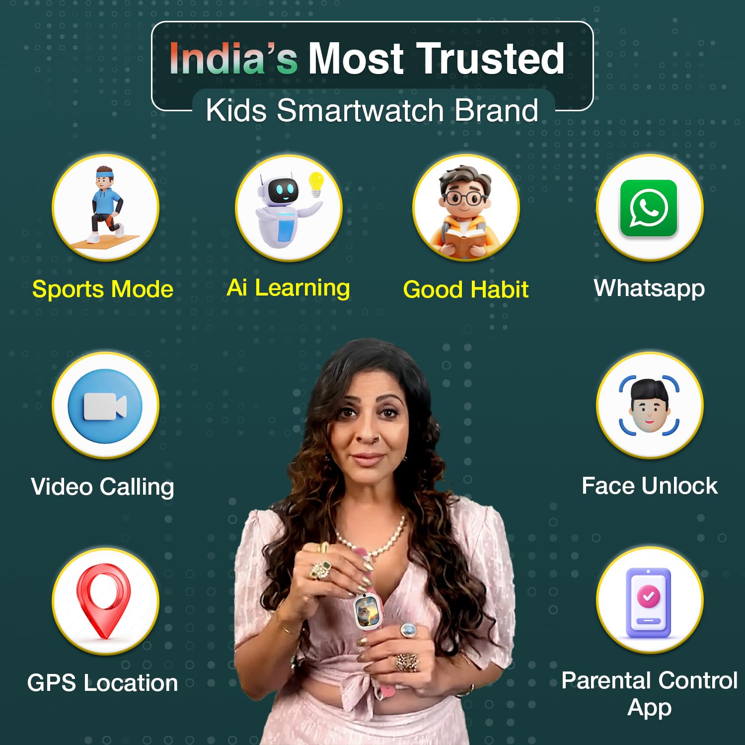 [HD Video Call & Family Chat] Insert a Nano SIM (Airtel/Vodafone/Jio) and let kids make 2-way HD video/audio calls. Stay connected through family group chat and ensure safety with the one-click SOS button.