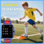 【IP68 Waterproof & Durability】This kids watch built with a sturdy stainless steel case(1.5-meter drop tested) and IP68 waterproofing for storms/pool play. Smart Watch for Kids Teens Automatically counts steps, distance, calories burned, and active minutes and Supports 100+ sports modes.