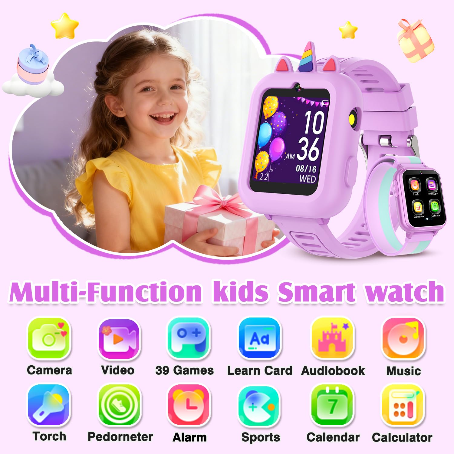 Smart Watch for Kids with 39 Games,Camera,Video,Music Player,Recorder,Alarm,Pedometer,Flashlight,Stopwatch,HD Touch Screen,Borthday Gift Toy for Girls Ages 3-12(Purple)