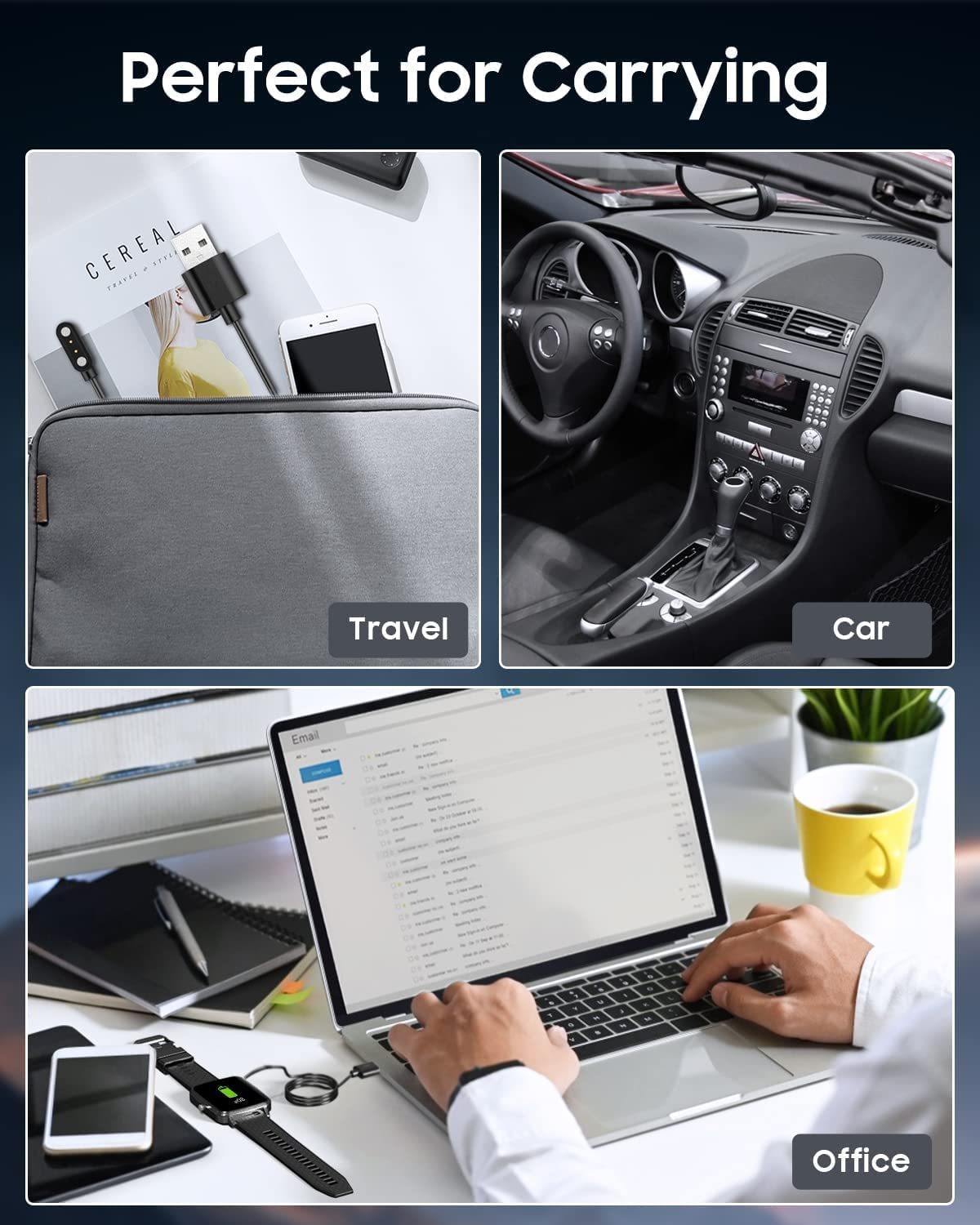 Portable and Lightweight: With brief surface and lightweight to keep your Smart Watch Chargerd at all times. Especially for whom travels often and keep it as a secondary charger.