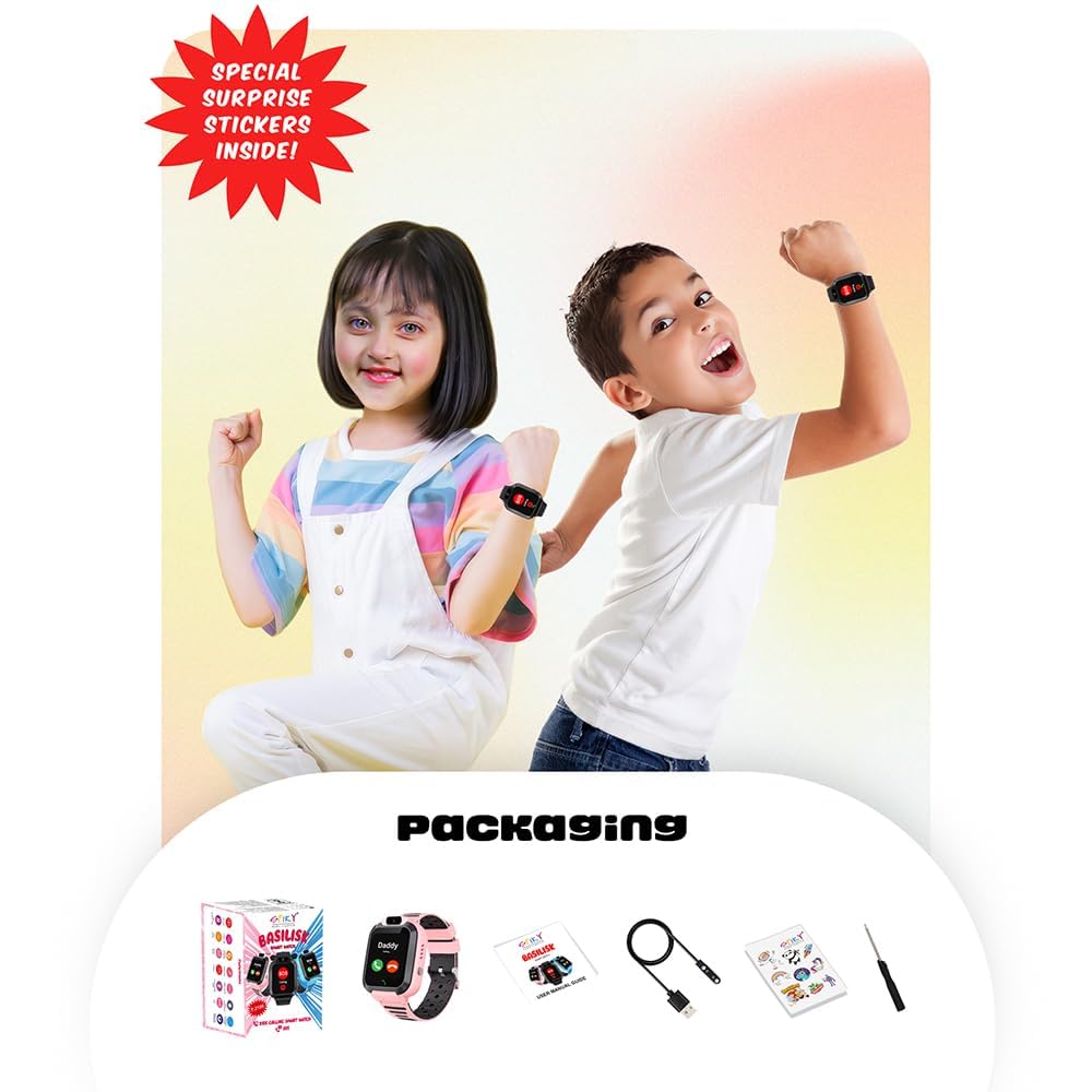 Complete Package: Includes Spiky 1 Smartwatch, 1 Charging Pin, a warranty card, user manual, cartoon stickers and hassle-free packaging.