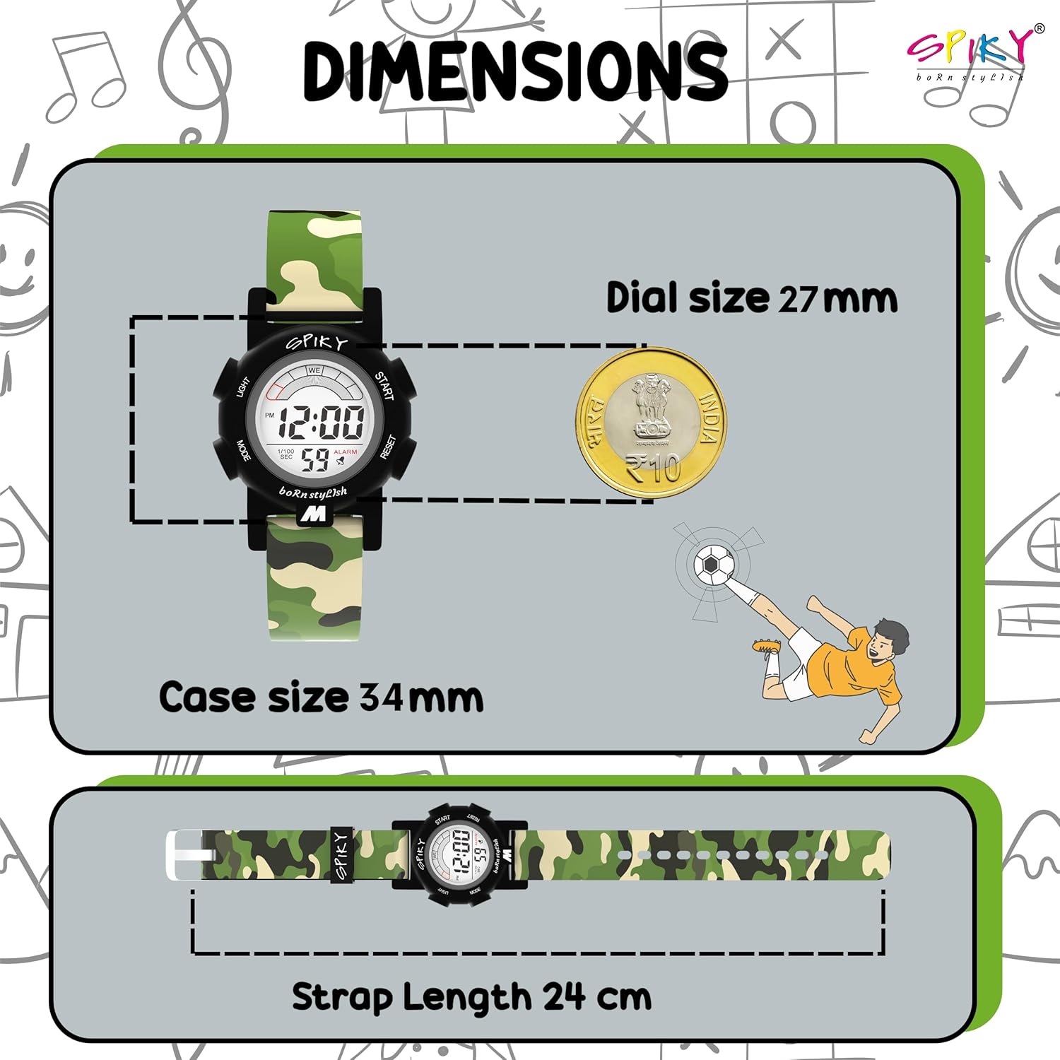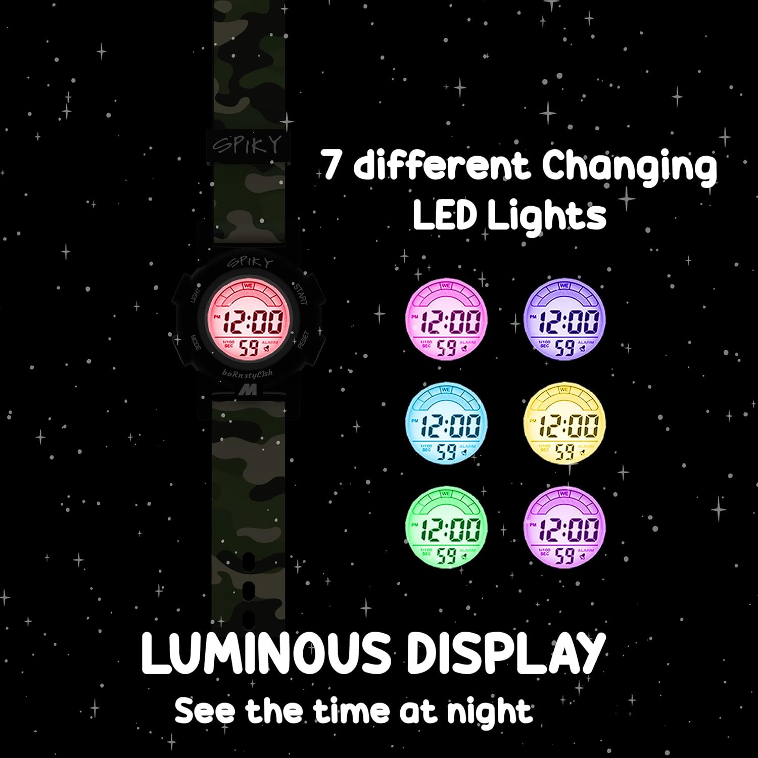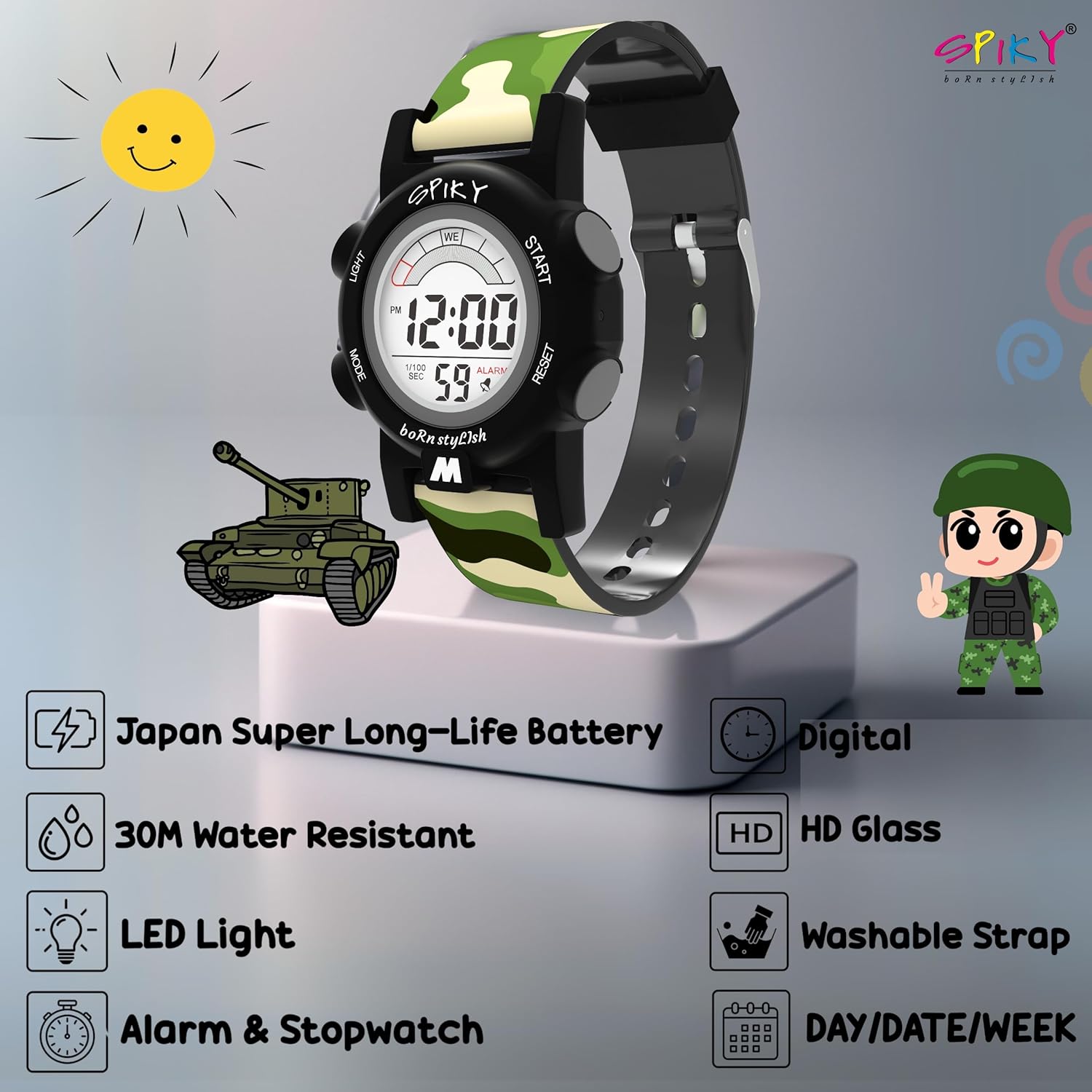 SPIKY Digital Sports Watch for Kids | Multifunctional with Luminous Display & Alarm | Water Resistant & Soft TPU Strap | Best Birthday Gift Wrist Watches for Girls & Boys | Age 3-14 yrs