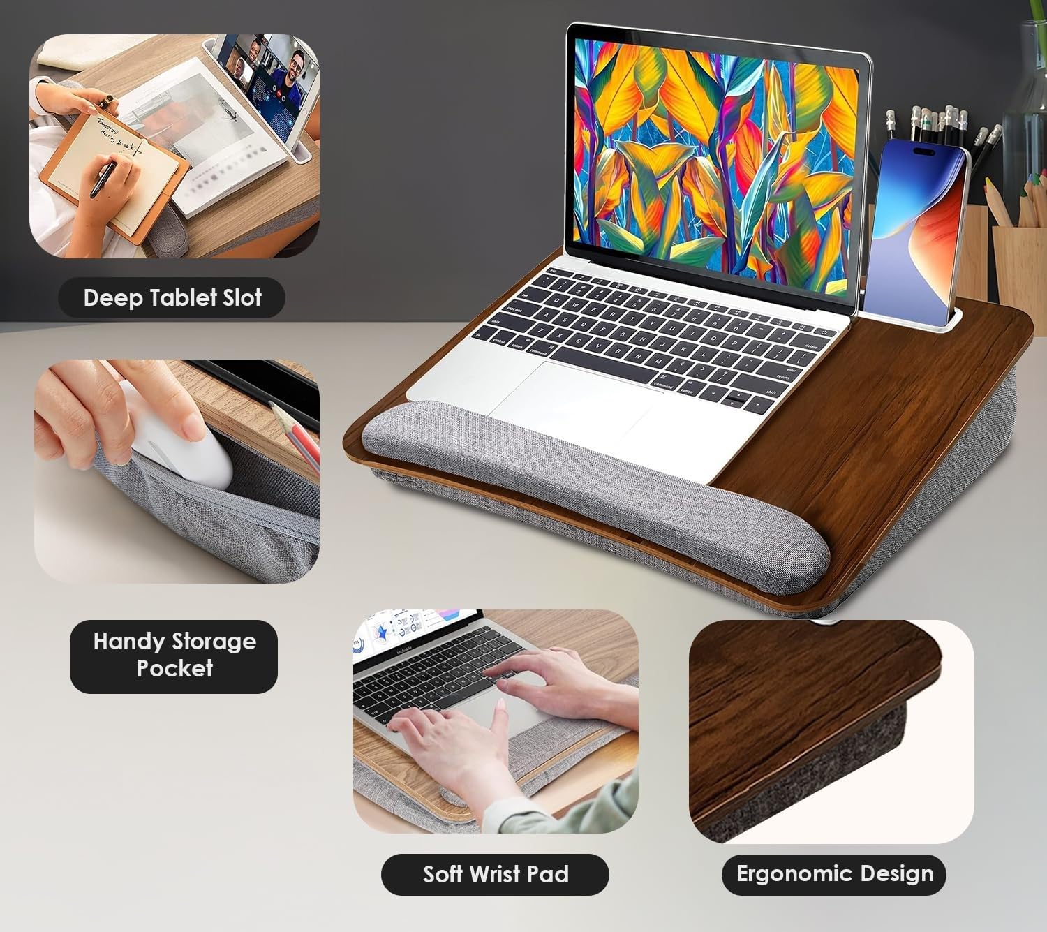 SWAZE Lap Desk with cusion for Arm Rest | Portable Table & Laptop Lapdesk for Sofa, Bed, Floor | Work Desk Accessories for Reading, Gaming, Studying (Brown)