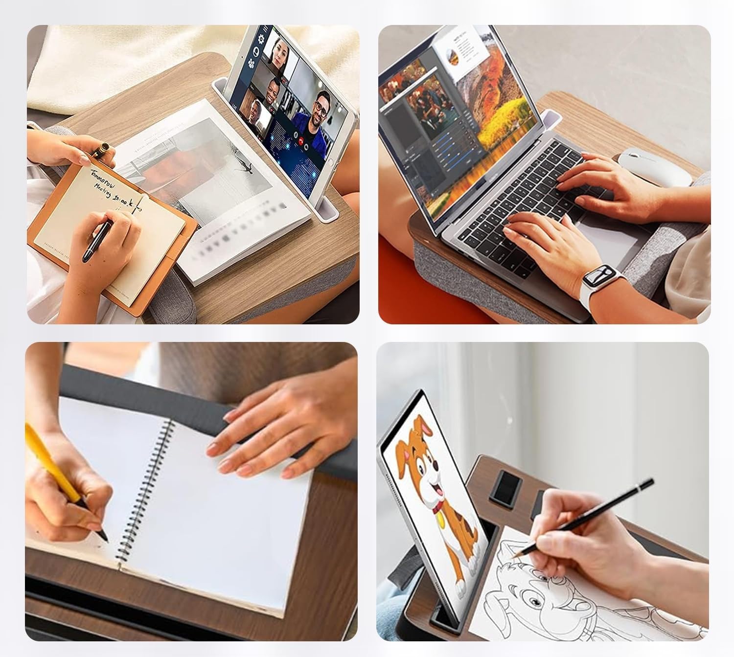 Work, Study & Relax in Comfort with the Ultimate Portable Laptop Table & Lap Desk Pillow – In today’s fast-paced lifestyle, flexibility and comfort are more important than ever. Whether you’re working from home, studying for exams, attending online classes, or simply enjoying a late-night movie on your laptop, the Portable Laptop Table with Lap Desk Pillow & Wedge Cushion is designed to meet all your needs. Unlike ordinary portable tables, this product combines the convenience of a portable desk, the comfort of a lap desk pillow, and the ergonomics of a laptop stand for bed. It is not just another Amazon basics table – it is your study table, laptop pillow, lap stand, and portable standing desk, all in one! 1. Multipurpose Design – One Table, Endless Uses This portable laptop table has been designed keeping versatility in mind. You can use it as: – Laptop Table Stand for Bed & Sofa – Work or study comfortably while lying down or relaxing. – Study Table Bed Table Foldable – Perfect for students during online classes, assignments, and homework. – Lap Desk Pillow with Wedge Cushion – Provides ergonomic support for long hours of use. – Portable Standing Desk – Convert your workspace instantly by placing it on any table. – Reading Table for Study for Adult – Use it as a reading companion or writing surface. – Study Desk for Kids – Ideal for children’s homework, art, or online learning. No matter how you use it, this portable desk is the solution to your everyday study, work, and leisure needs. 2. Adjustable, Foldable & Compact One of the biggest problems with traditional tables is the lack of flexibility. This laptop table adjustable is designed with an easy-to-use mechanism that allows you to set the perfect angle and height. – Foldable Design – Saves space and can be stored under the bed, behind the sofa, or carried in your car. – Compact Size – Works as a small laptop table or mini laptop 5 inch table, yet provides enough surface area for books, laptops, tablets, or even snacks. – Table Extender for Extra Space – Additional room for mouse, notes, or accessories. This makes it the ideal homework table, my laptop table, or even a padhne wala table that can be used anywhere. 3. Ergonomic Comfort with Wedge Cushion & Lapdesk Pillow Sitting for long hours on a traditional desk can cause discomfort. That’s why this table comes with a lapdesk pillow and wedge cushion support. It reduces strain on your neck, back, and wrists while improving posture. – Laptops stay cool and steady thanks to the cushioned base. – Wedge cushion design ensures the ideal typing angle. – Lap desk pillow adds comfort, making it easier to work or study from bed. It’s not just a laptop pillow – it’s your ultimate comfort companion. 4. Durable & Premium Quality – Built to Last This isn’t a flimsy portable table that breaks after a few weeks. Made from high-quality, durable materials, it can withstand daily use by adults and kids alike. Whether you’re using it as a study desk for kids, a reading table for adults, or a portable laptop table for work, you can trust its strength and stability. The laptop table is lightweight yet strong, making it easy to carry while being tough enough to hold your devices and study material. 5. Perfect for All Ages & Needs – For Adults: Use as a portable standing desk during office hours or as a reading table at night. – For Students: Ideal study desk for kids or homework table for completing assignments. – For Families: Can be shared among family members as a padhne wala table, small laptop table, or even as a snack tray. – For Travelers: Lightweight, compact, and foldable – your best companion for long journeys. 6. Why Choose This Over Other Laptop Tables? When searching for a laptop stand for bed or laptop table adjustable, you’ll find many options. But what sets this apart is its combination of comfort, durability, and multi-functionality. Most tables are either too small, too big, or lack ergonomic features. This product solves all those problems by combining the best features of a lap stand, laptop pillow, table extender, and portable desk into one. It is better than Amazon basics table options and designed for both work from home professionals and students alike. 7. The Perfect Gift Looking for a thoughtful and practical gift? This table laptop study bed home solution is perfect for: – Students preparing for exams. – Professionals working from home. – Children attending online classes. – Anyone who loves reading, writing, or watching movies in bed. Give your loved ones the comfort of a foldable study table with wedge cushion support – a gift they will use daily. The Final Verdict The Portable Laptop Table with Lap Desk Pillow, Wedge Cushion, and Adjustable Foldable Stand is more than just a portable desk – it’s a complete solution for modern lifestyles. Whether you call it my laptop table, homework table, portable standing desk, or laptop table , it’s designed to make your life easier, more productive, and more comfortable. No matter your age, need, or lifestyle – this laptop table adjustable will be the best addition to your home. Upgrade your study, work, and entertainment experience today with this ultimate foldable laptop table!