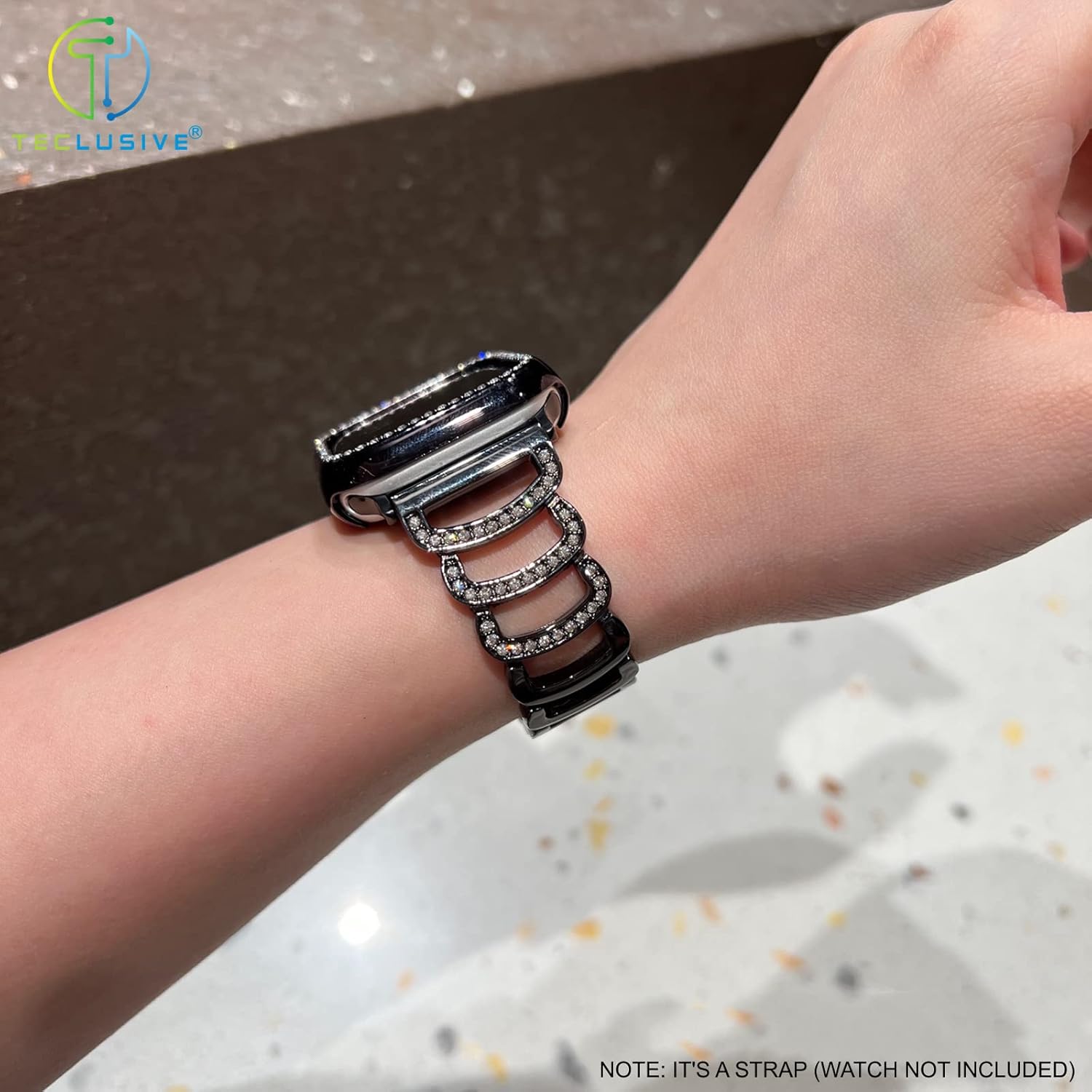 T TECLUSIVE Ultra Luxury Diamond Shinning Glitter Metal Strap Band Compatible for iWatch Ultra 2/ Series 10 9 8 7 6 5 SE | Fancy Chain Strap for iWatch (49mm/45mm/44mm/42mm, Black)