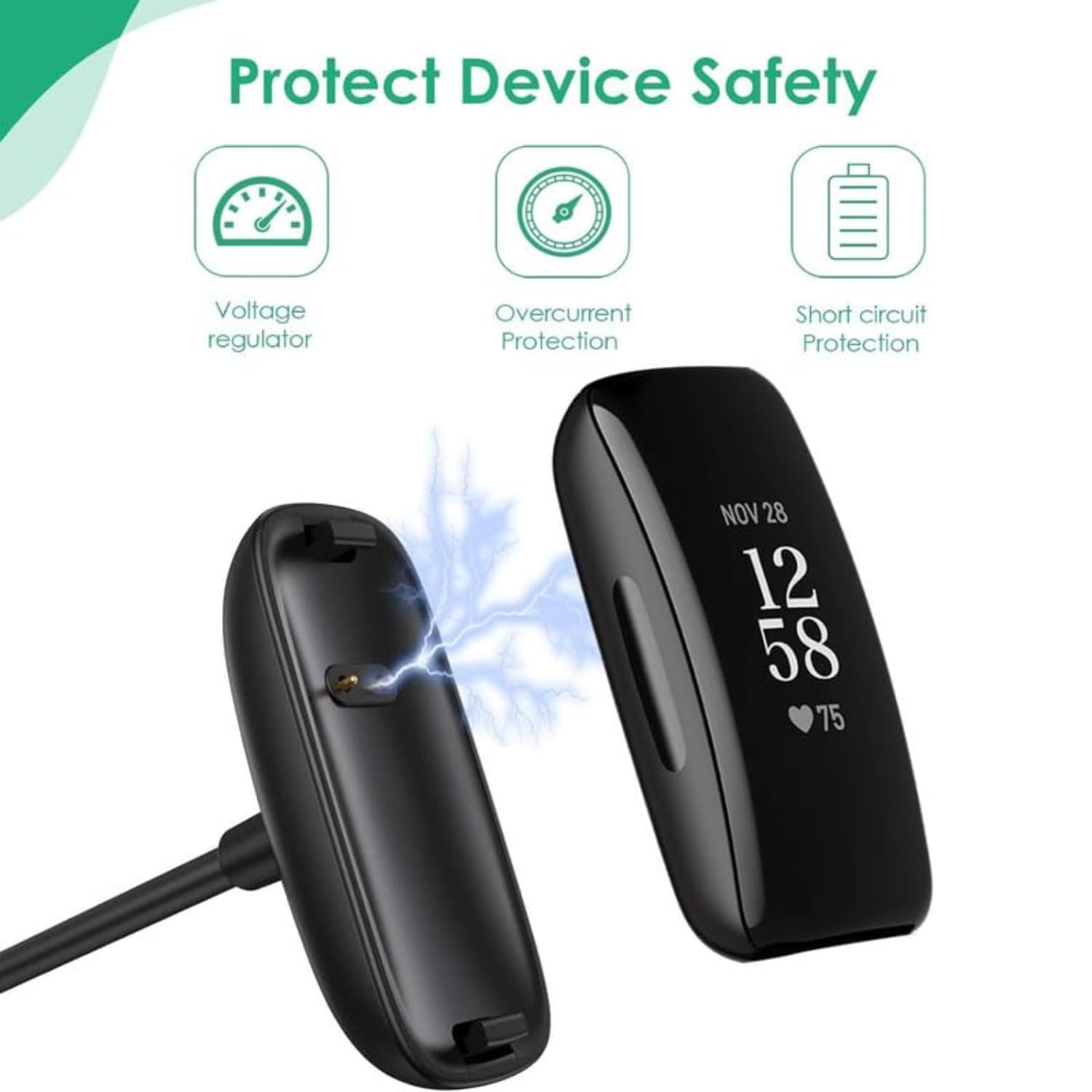 [1 Mtr Cable Length] TechTrendz inspire 2 charger dock provides extra long replacement charging cable to give your inspire 2 fitness tracker a boost in the office, at home, in car or in travels.
