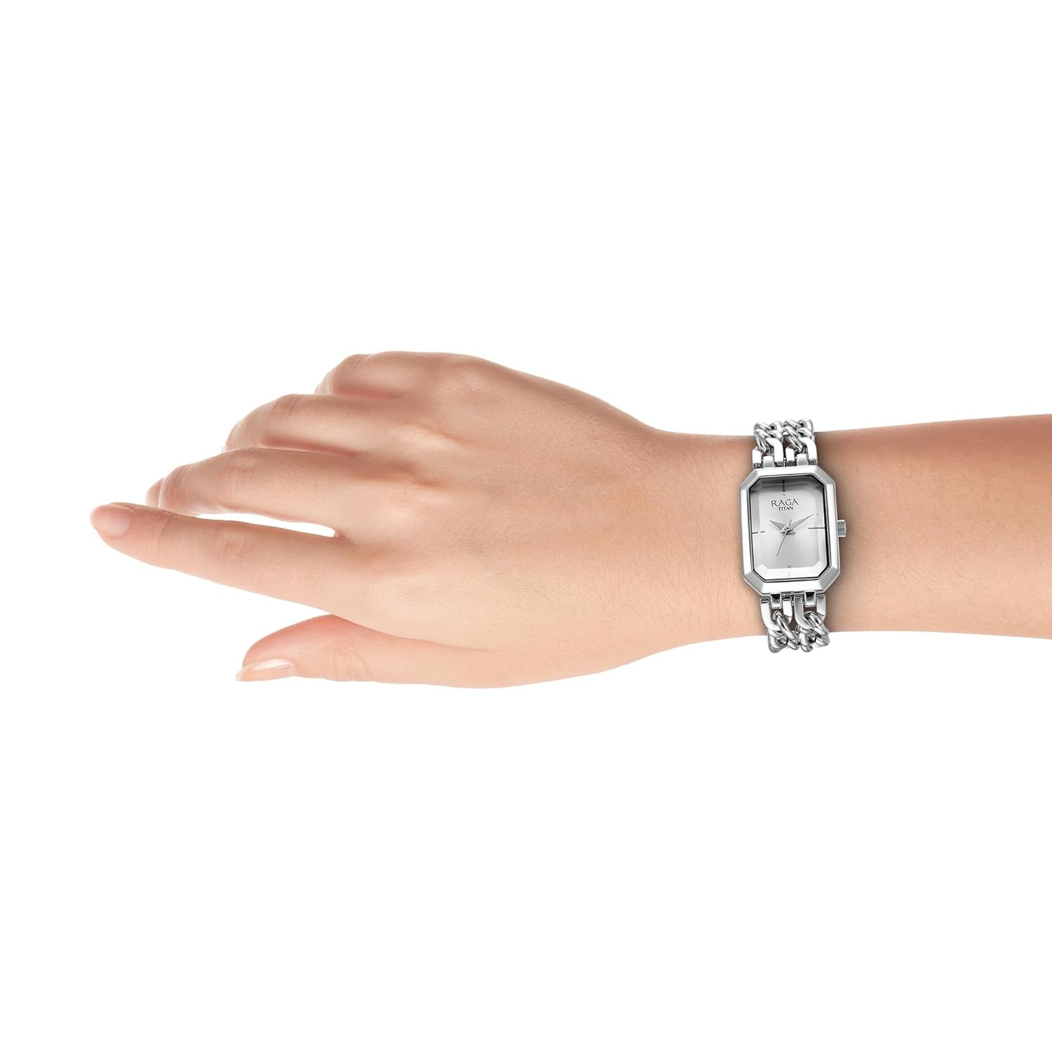 Titan Raga Showstopper Quartz Analog Silver Dial Silver Metal Strap Watch for Women – NT95283SM01