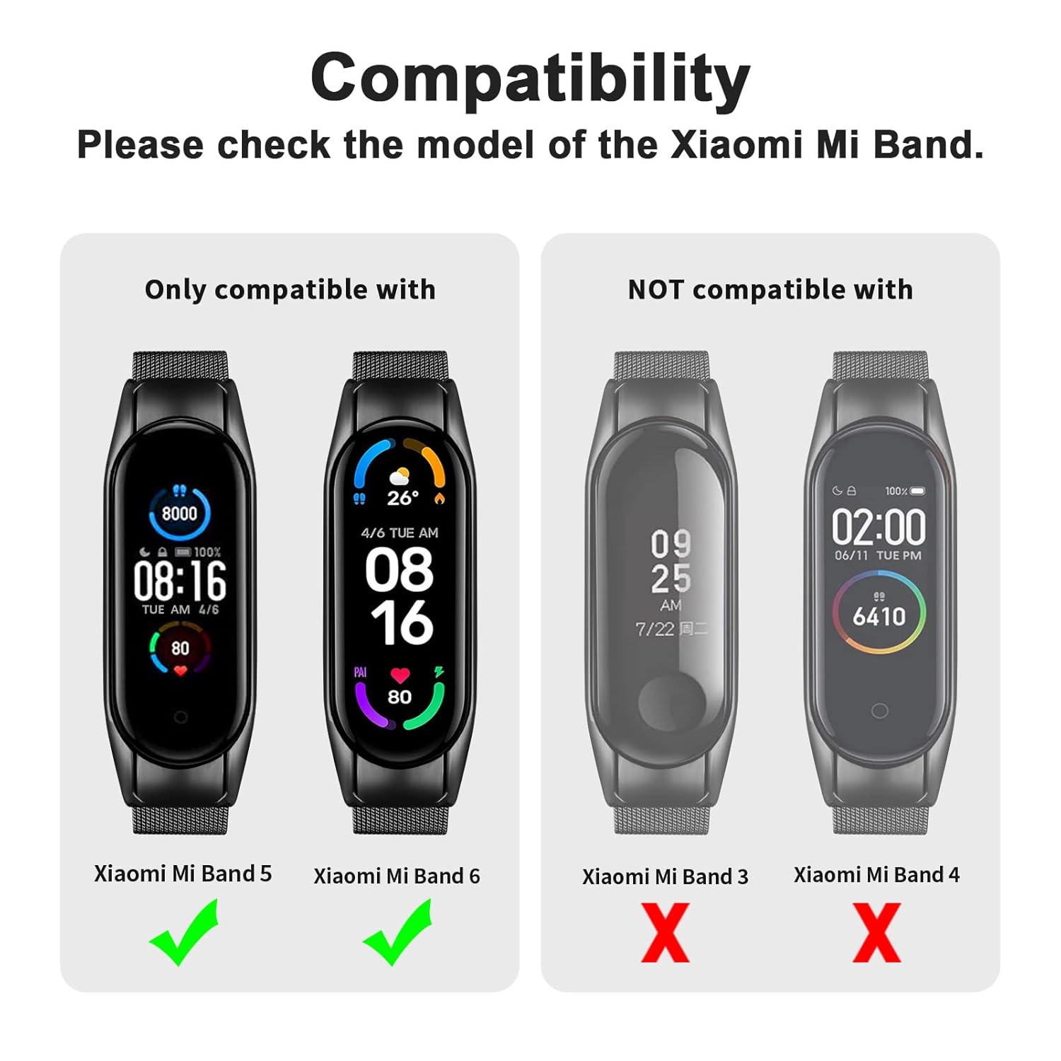 The durable replacement band for Mi Band 5 / 6 is perfectly compatible with the following fitness trakers.