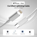 MFi Certified: Ensures the cable is made to meet Apple’s standards for compatibility and performance, preventing compatibility issues.