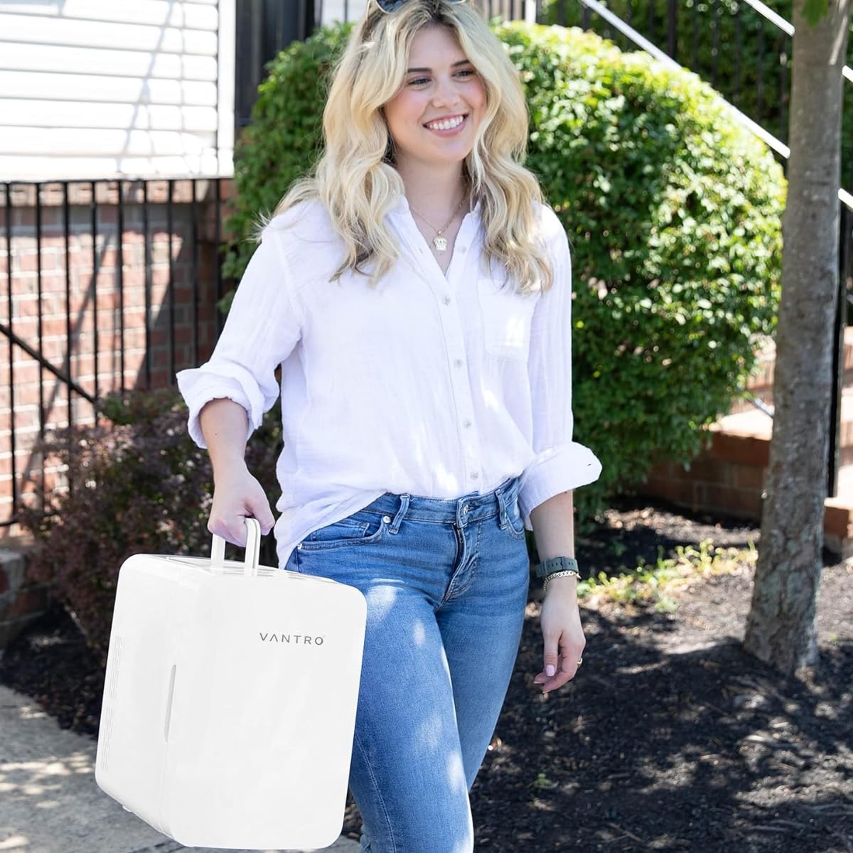 Practical and Stylish: The compact fridge has a futuristic aesthetic, plenty of features, and a low-noise system. The upgraded Vantro 10L Skincare Fridge is the first choice for bedrooms, offices, dormitories, trips and more.