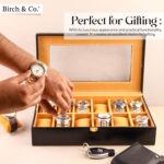 12 SLOT CAPACITY: With 12 spacious slots, this watch organizer for women provides ample space to organize and showcase your watches. Each compartment ensures watch organiser box for men are secure and neatly arranged.