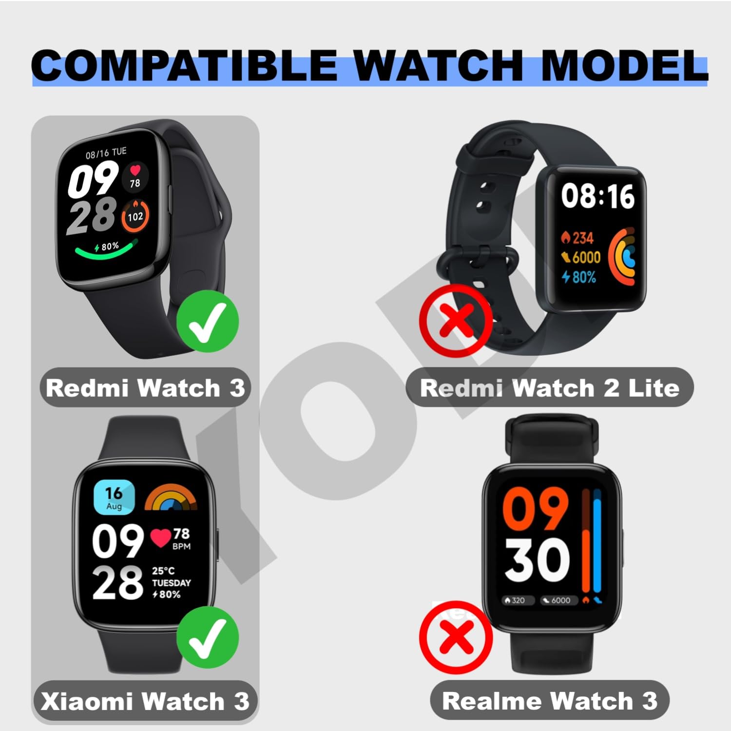 Package Contents: @ Watch Band For Redmi Watch 3 Active Smart Watch Only (Note: the Smartwatch is Not Included)