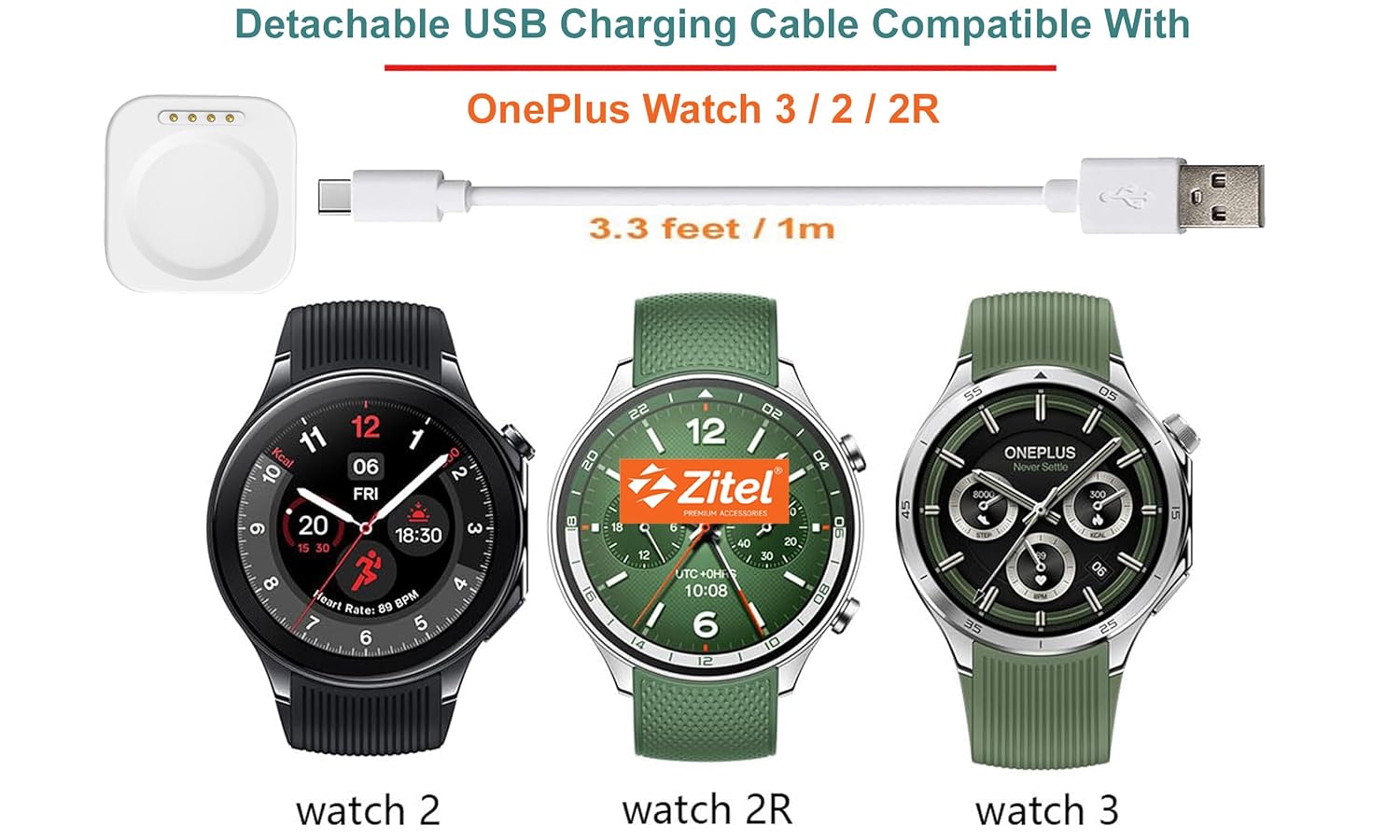 Zitel® Charger Compatible with OnePlus Watch 3/2 / 2R – Magnetic Charger Dock USB Cable (White)